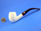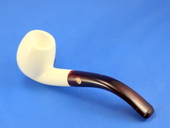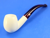 Half-bent smooth billiard. Turkish Bakelite Brown Swirl tapered stem. Custom-fitted velvet-lined SMS logo case protect the beauty of the pipe.