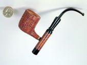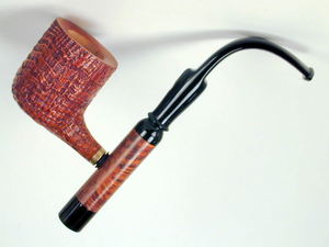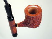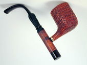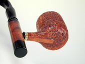 Medium Cavalier with Briar Inlaid Fancy Stem. Sandblast finished bowl. Residue clean-out on main stem.