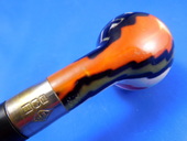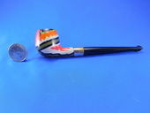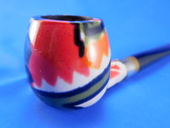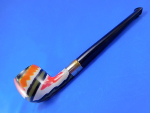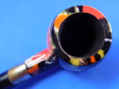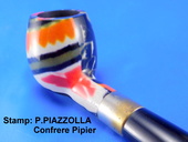 VINTAGE - UNSMOKED! Fantastically colored exterior from the 80's by P. Piazzolla - Ilaly. Small bowl. Unsmoked. Vulcanite straight tapered stem. Shank is banded. Regular tenon. Cloth sleeve included. Stamping: P. PIAZZOLLA Confrere Pipier.