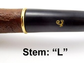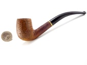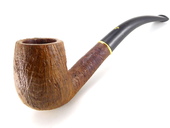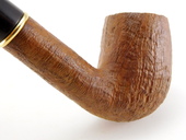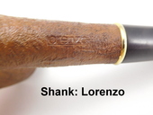 VINTAGE - Unsmoked! Lorenzo bent billiard shape with sandblast finish and large bowl. The stem is Vulcanite with regular tenon. Gold-colored stem trim. Shank: LORENZO. Stem: "L". Lorenzo logo cloth sleeve included.