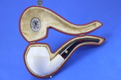 BENT BULLDOG - Classic BULLDOG with a Round Shank. Full-bent smooth with tapered Turkish dark burgundy Bakelite stem. Custom-fitted SMS logo case.