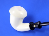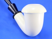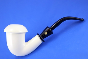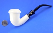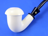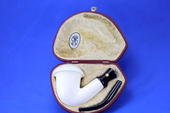 FERRULED CALABASH - Extra large bowl. Block Meerschaum Calabash with two-part ferruled black stem. Kidney-shaped fitted case.